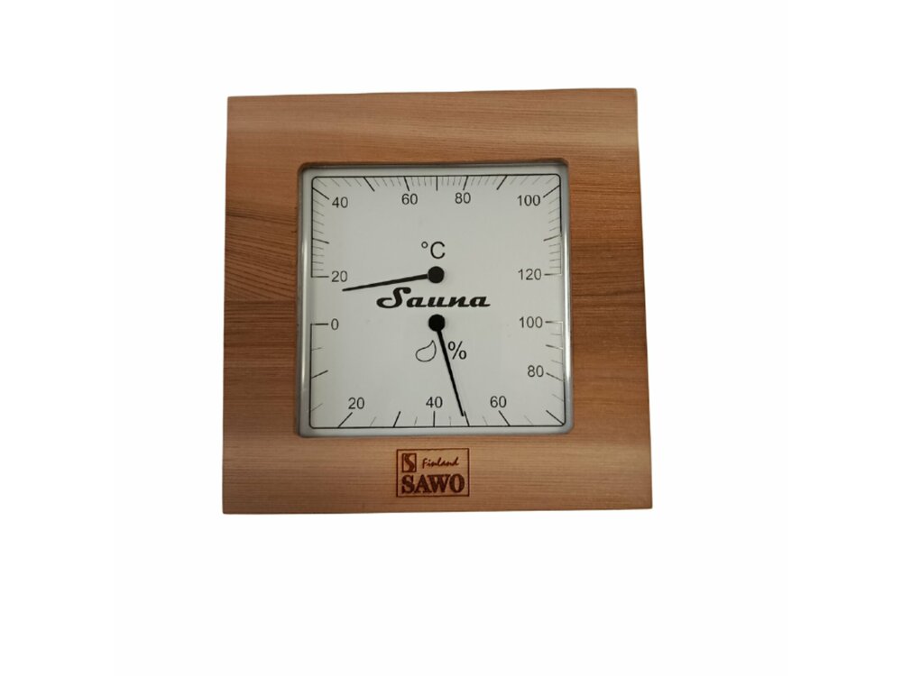 - Cedar wood climate station for measuring temperature and humidity in the sauna.