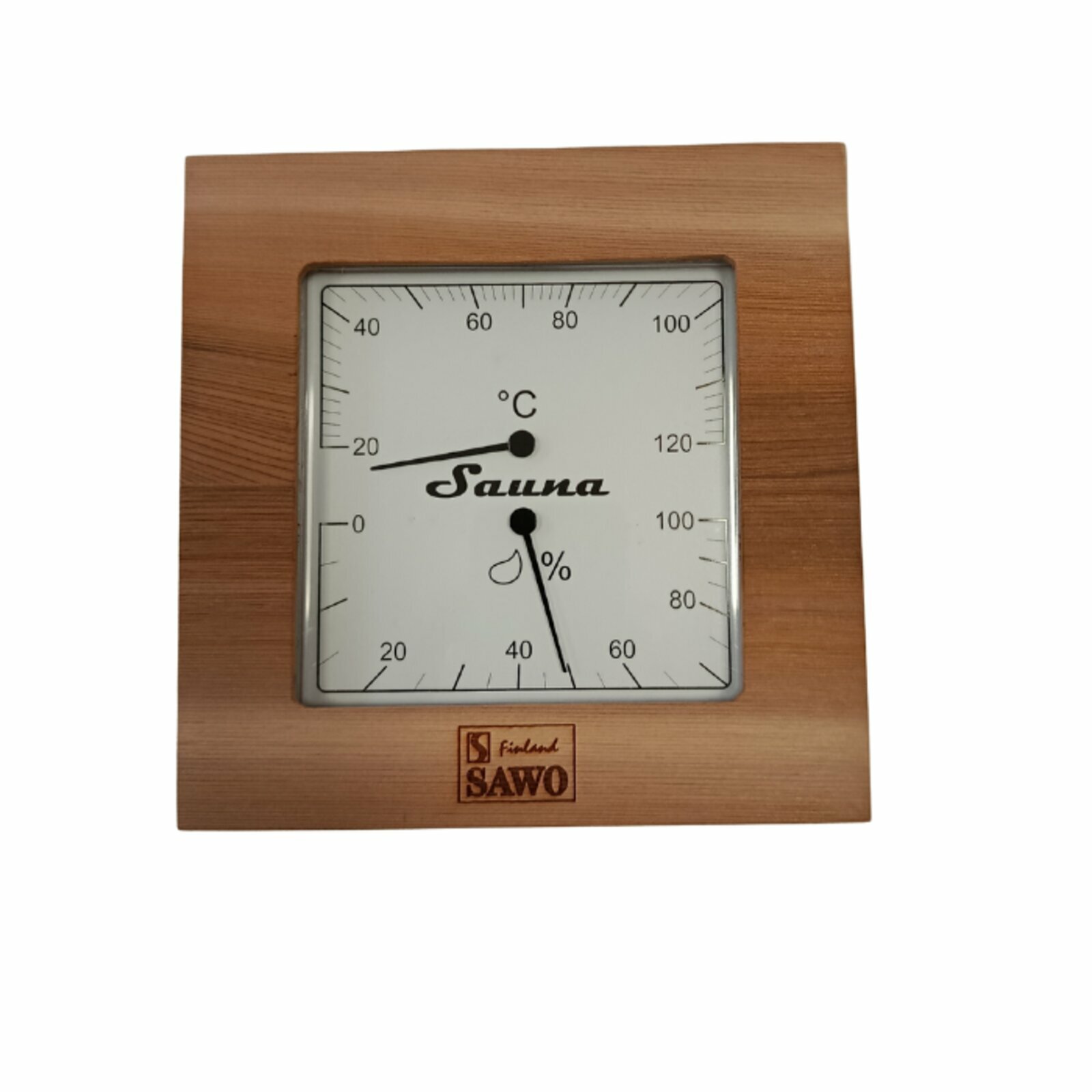 - Cedar wood climate station for measuring temperature and humidity in the sauna.