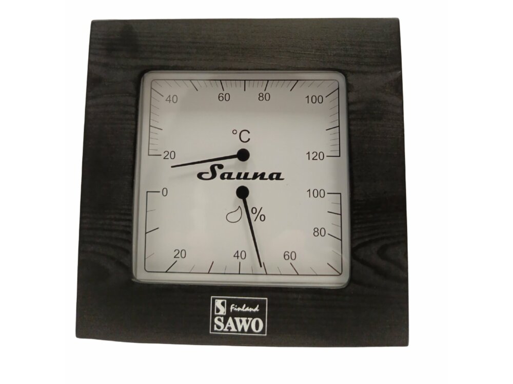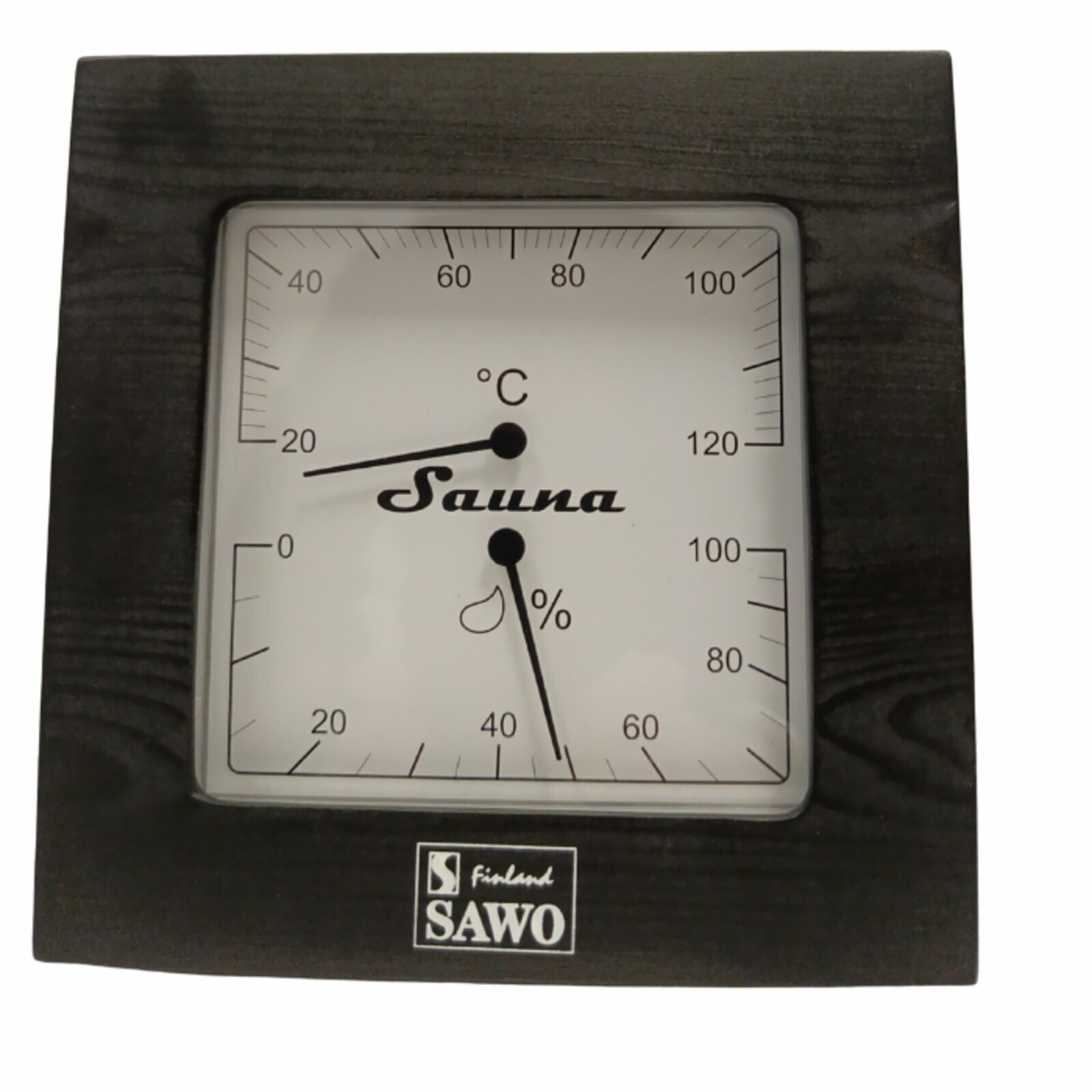 - Pine wood climate station for measuring temperature and humidity in the sauna.