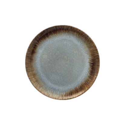 The Kera Ø24 cm ceramic serving plate from the Still Topaz series, featuring a combination of blue and brown, brings a touch of elegance and originality to your table. The plate has a hand-decorated surface—glossy on top and matte underneath—with irregular edges that give it a unique character. Suitable for everyday use as well as professional gastronomy.