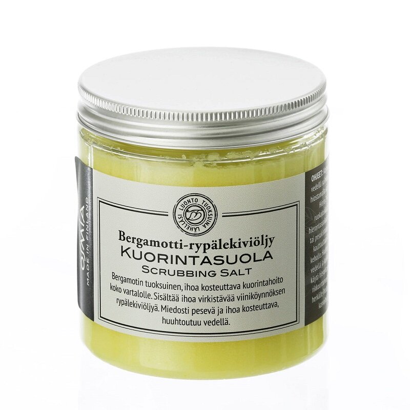 A hydrating peeling salt with a bergamot scent that cares for the skin of the whole body. Contains natural grape seed oil. The exfoliating ingredient is finely ground salt.
