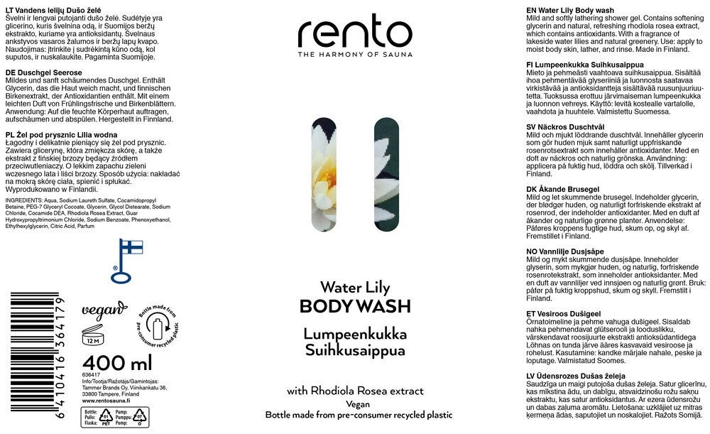 Rento body wash, water lily, 400 ml