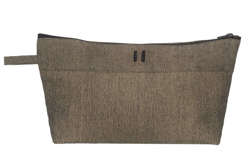 Keep your sauna and wellness accessories neatly organized. This cosmetic pouch in an elegant beige-black combination offers practical space for cosmetics, oils, brushes and small items you want to have within reach during your sauna session.