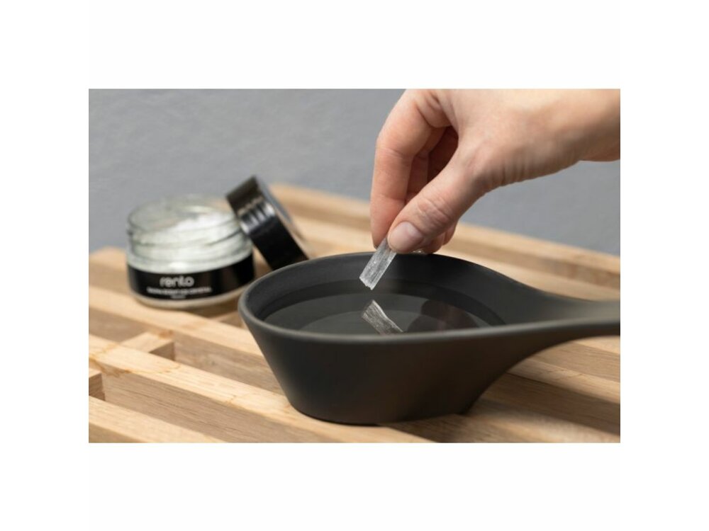 Important: Use with caution, start with a small amount, e.g. with one small crystal of 0.5 cm. Do not put the crystals in cold sauna water, as the crystal does not dissolve in cold water. When in contact with the skin, it causes a special feeling of coldness and also increases the blood supply to the area. This does not pose a danger to the skin, the feeling disappears after a while. Be especially careful not to rub your eyes! Do not place directly on the heating elements of an electric heater - the crystal may ignite! Store the crystals in a closed container at room temperature, do not store them in the sauna, so that the crystals do not dissolve in the container (melting point approx. 41 °C). Keep out of reach of children.