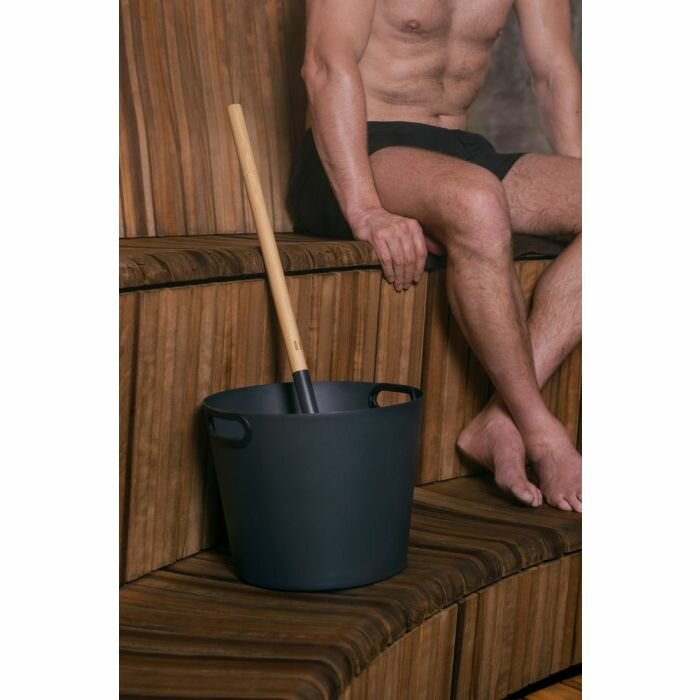 The stylish large sauna bucket Rento is made of aluminum and the bucket handle is silicone.