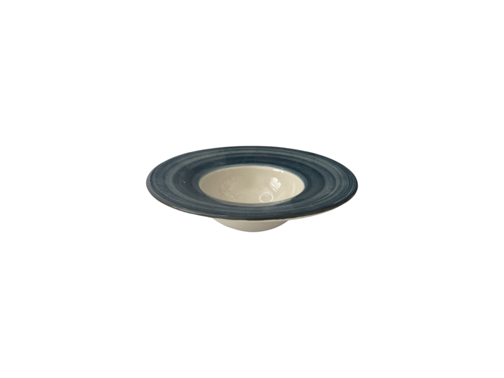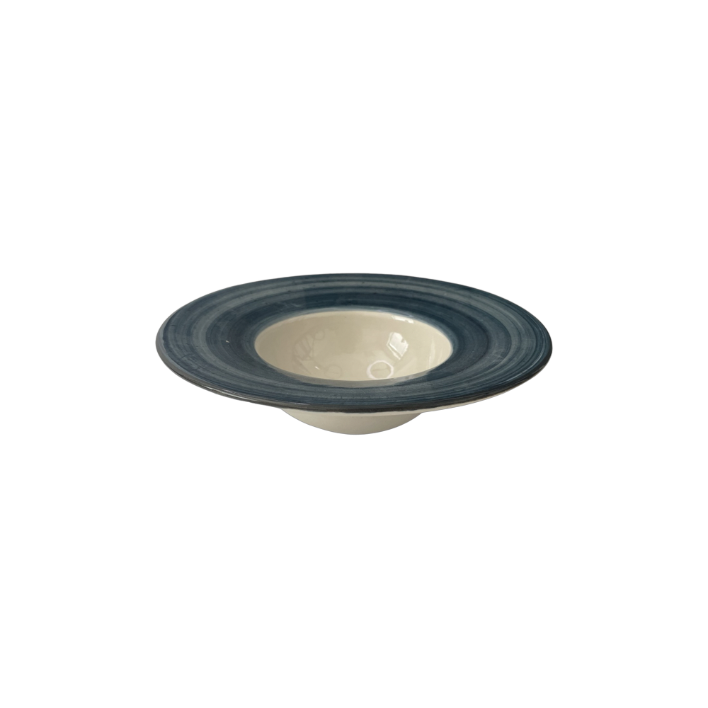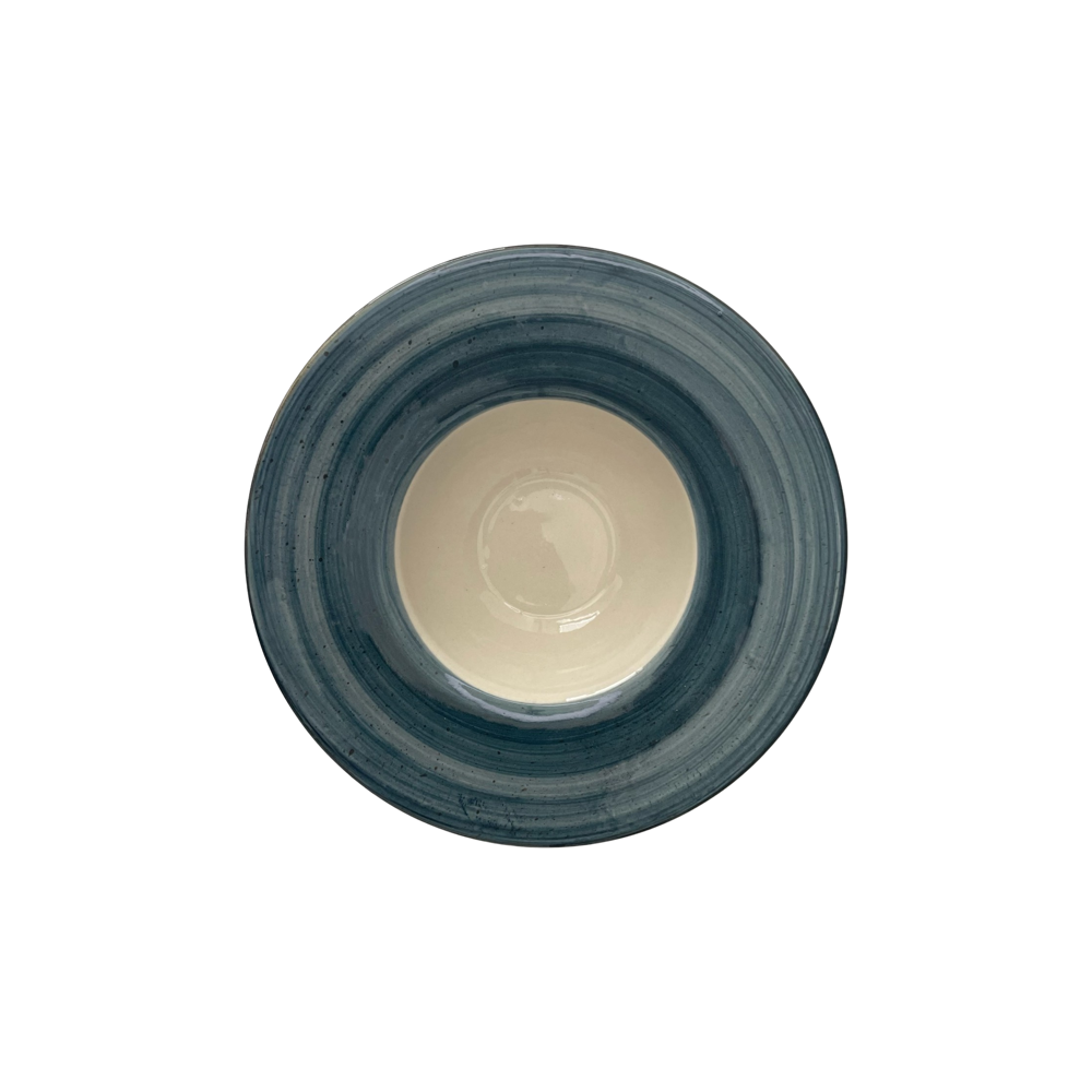 Its deep shape with a wide rim (rondo) is ideal for serving pasta, risotto, or soups. The interior is glossy and glazed, while the exterior has a subtle matte finish, creating an attractive contrast and a sense of elegance.
